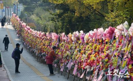 그러나 추미애의 멍청하지만 치졸하고 애절하기까지 한 윤석열 죽이기 때리기는 어제까지 계속되었습니다. 그런데 윤석열 총장은 묵묵히 자신의 일을 감당해 왔지요. 그런 윤석열 총장 앞에 꽃다발이 전시되었었습니다.