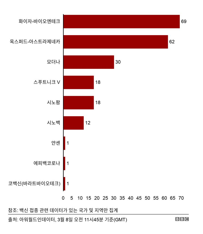 다른 나라들은 백신에 집중해서 이미 단체 면역 이야기가 나오고 있는 상황이지요. 아래 그래프는 전 세계 백신 접종 순위입니다.