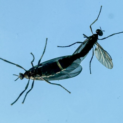 러브버그(Plecia nearctica 또는 한국에서는 Plecia longiforceps)는 홍등우단털파리로도 불리는 6–9 mm 정도의 작은 파리입니다. 몸통은 검은색이고, 머리 바로 뒤쪽 흉부(전흉)는 붉은 주황색을 띱니다.