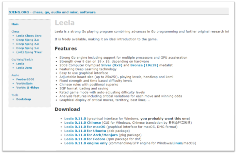프로그램 이름은 Leela입니다. Download 아래에 Leela 0.11.0을 클릭하시면 됩니다. 다운로드하시고 설치하시면 되는데, 설치 시 특별히 어려운 점은 없어 보여 설명은 생략하겠습니다.