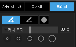 브러시 : 내가 선택한 브러시의 영역을 투명하게 만듦