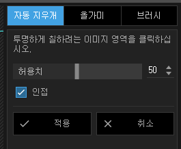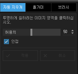 자동 지우개 : 내가 선택한 색상과 비슷한 색상을 찾아 투명하게 만듦