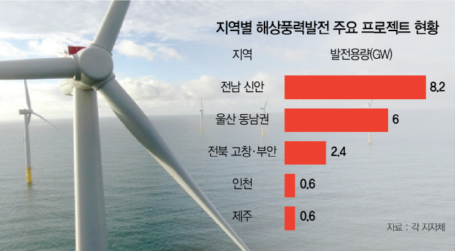 원전 2개 호기가 신한해상풍력 단지와 같다